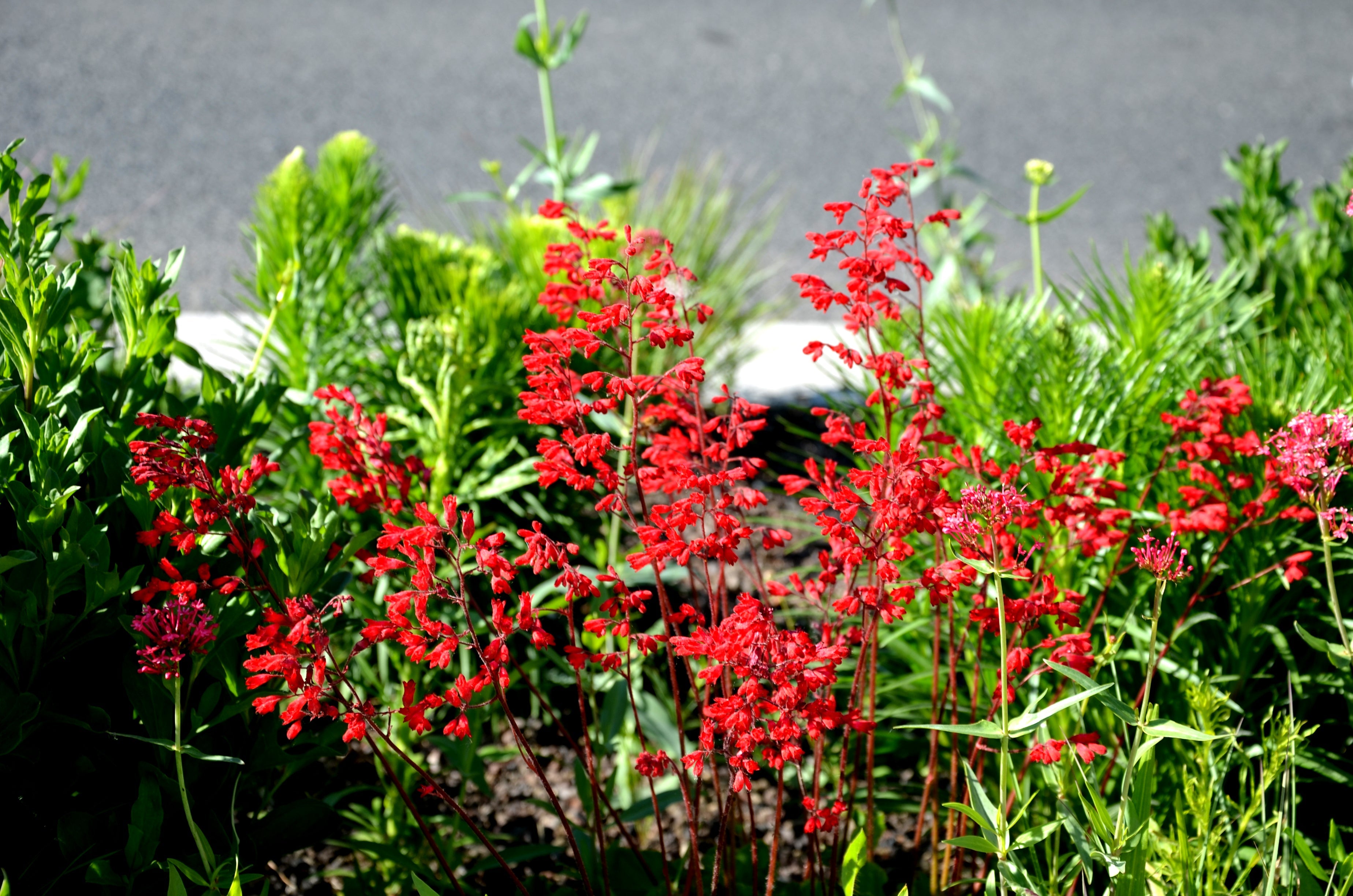 Coral Bells are prized for their neatly mounded foliage and “Firefly’ is doubly gorgeous with its bright red flowers.