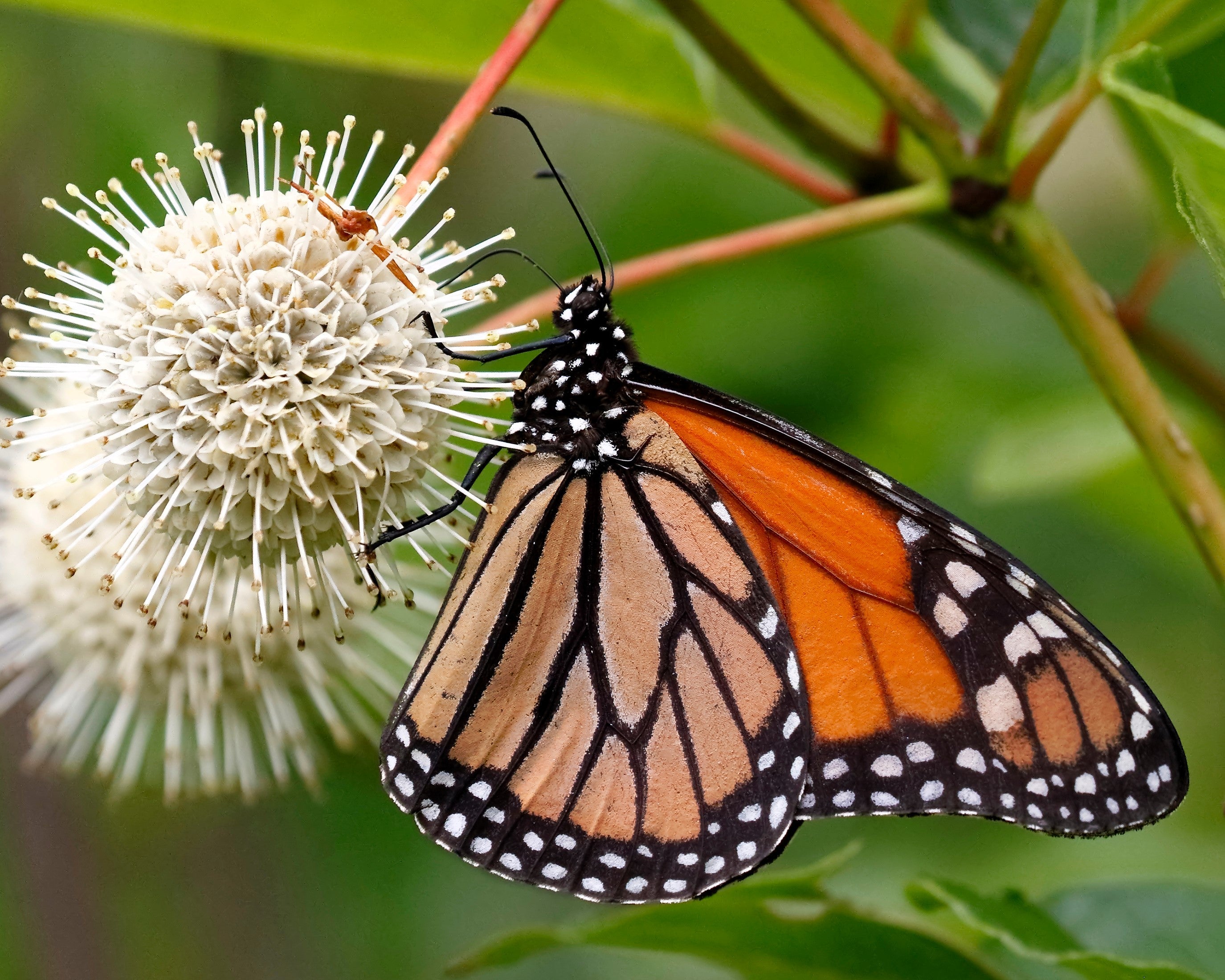 The Buttonbush is a fragrant woody shrub with ball shaped flower heads that are very unique! They are great near ponds and streams, and water birds such as ducks enjoy eating their seeds. They are also a host plant for the Sphinx Moth and a nesting site for song birds. As if that is not enough, they also attract HUMMINGBIRDS!