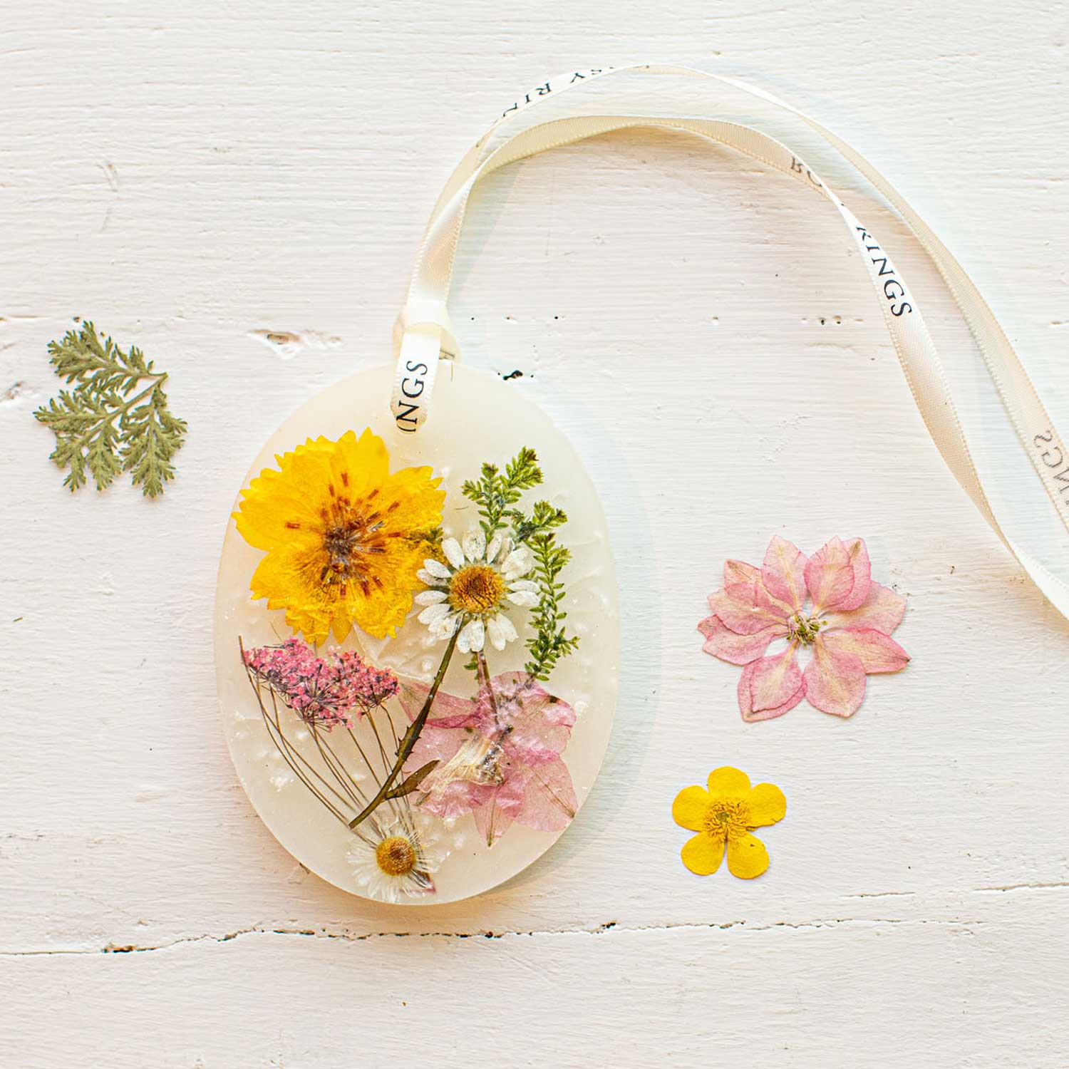 Bring seasonal fragrances indoors with our hand poured sachets. Pretty enough to display, these botanical-infused sachets can be hung in closets or small areas to refresh your space and impart a delightful fragrance. Tied with a "Rosy Rings" ribbon. I love these in the car as a clean air freshener!
