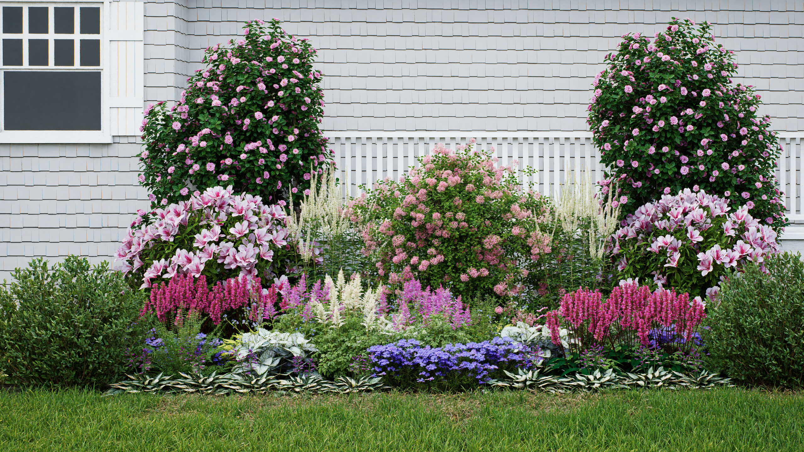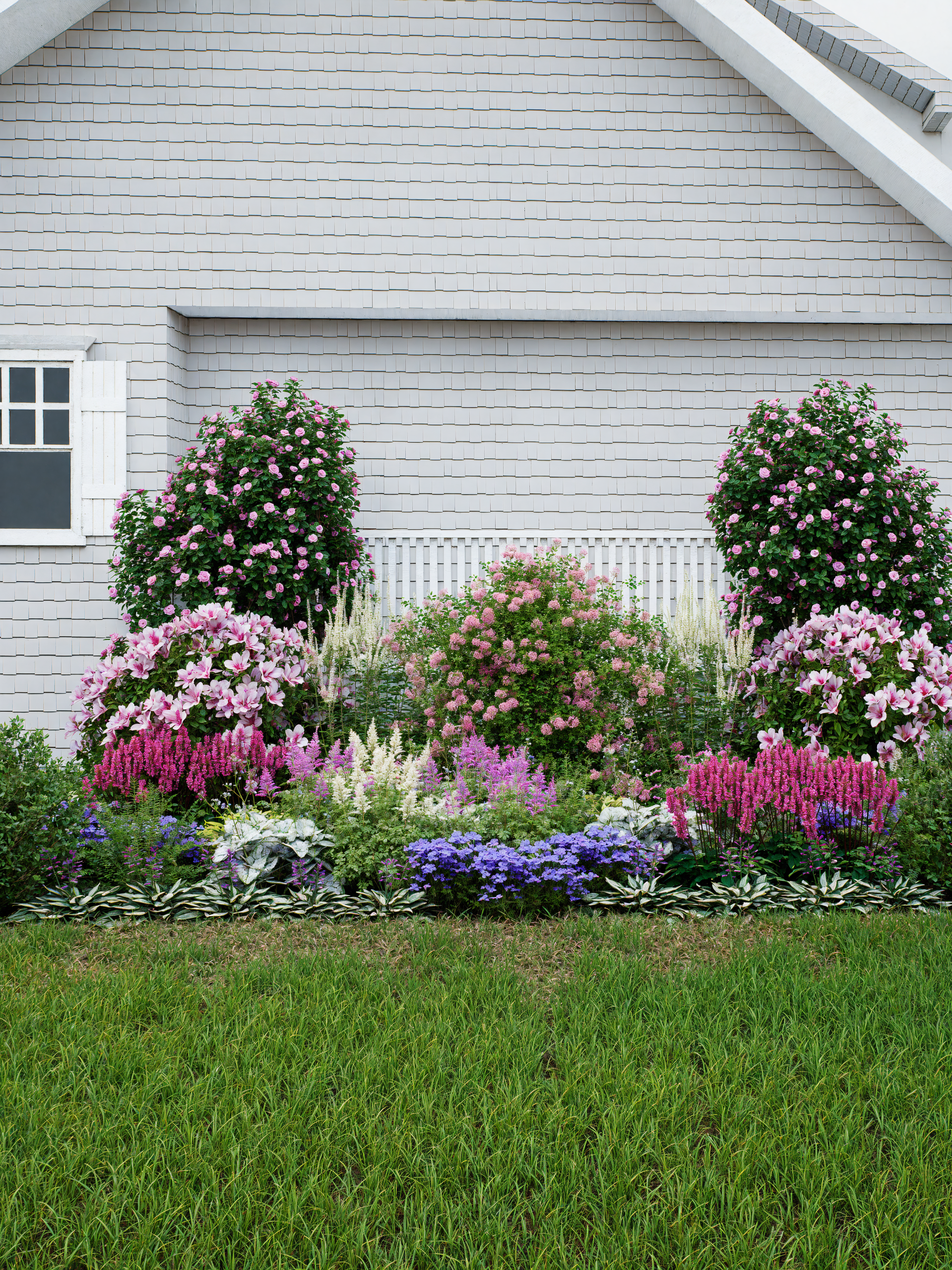Featuring astilbe, rhododendron, boxwood, lamium, and more, this design delivers color, fragrance, and texture from spring through fall—plus winter interest for structure and contrast.